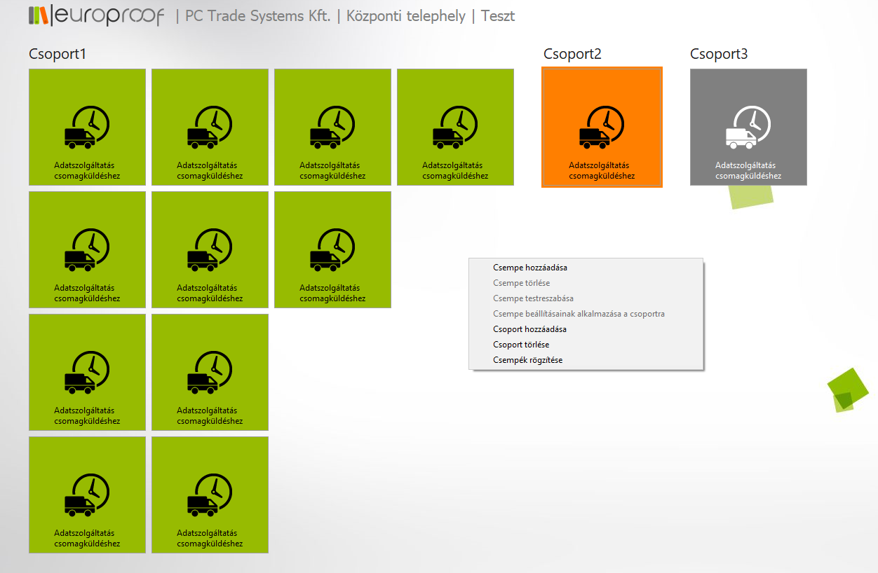 - Csoport törlése: annak a csoportnak a törlése, melyen a jobb gombos menüt előhívta. Csoport törlése esetén a benne található összes csempe törlődni fog!
