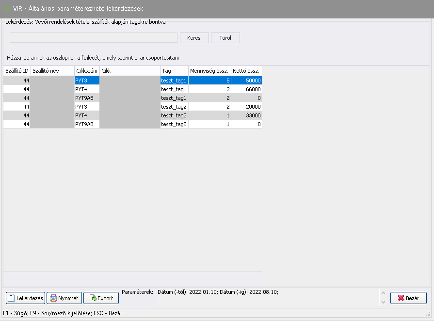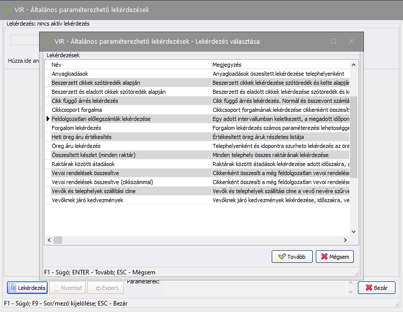 Elérése: VIR -> Általános paraméterezhető lekérdezések