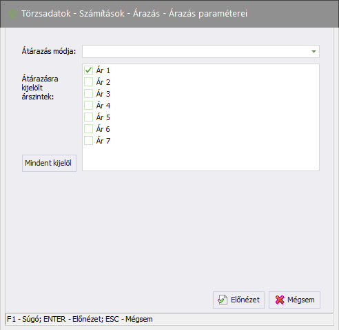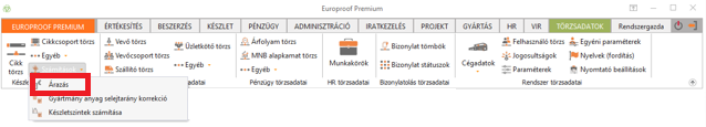Elérése: Törzsadatok -> Számítások -> Árazás