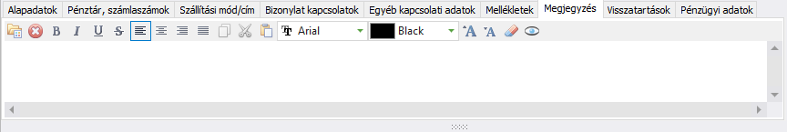 A Megjegyzések fülön megjegyzés szöveget adhat a bizonylathoz, mely szöveg a Fizetendő összeg és az aláírás hely közötti részen jelenik meg a kiállított bizonylaton.