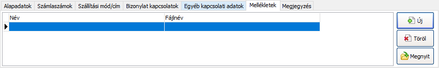 A Mellékletek fülön fájlmellékletet adhat hozzá a bizonylathoz.