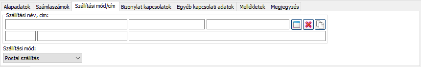 ikonnal törölheti a szállítási cím mezőkből az adatokat. A rögzített cím nem törlődik a vevő adatlapjáról, csupán csak a bizonylat mezőjéből tűnik el. A