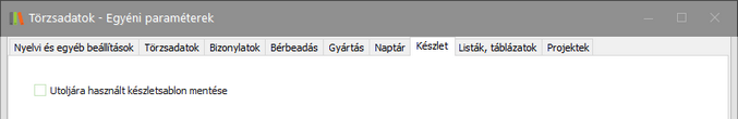 Beállítása esetén az utoljára használt készletsablon elmentődik.