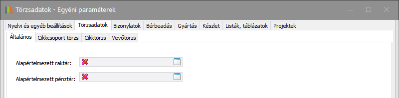 Törzsadatok beállításai - Általános