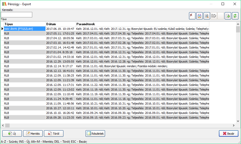 Elérése: Pénzügy -> Export