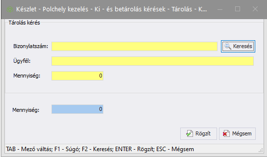 (Módosít) gombot a Készlet - Polchely kezelés - Ki- és betárolás kérések - Tárolás ablak jobb oldalán található Tárolás részben: