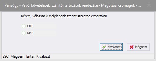 (Elküld): A megbízási csomag exportálása. Az export egy .xml kiterjesztésű fájl amit az OTPdirect Electra terminálon keresztül adhat át banki feldolgozásra.