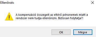Fontos! A kompenzáció dátuma nem történhet jövőbeni időpontra! Erről egy ellenőrzés ablak is tájékoztatja a felhasználót.