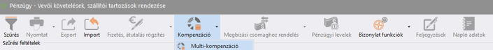 Elérése: Pénzügy -> Vevői követelések, szállítói tartozások rendezése -> felső gombsoron