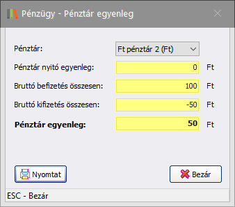 Elérése: Pénzügy -> Pénztár kezelés -> Pénztár egyenleg