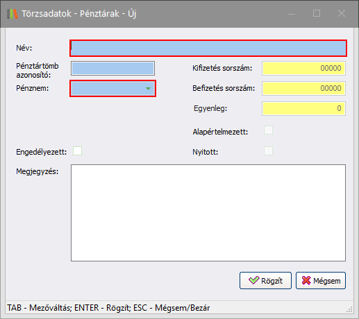 A létrehozott pénztárak a Pénznem törzsben megadott kerekítési szabályokat fogják használni.