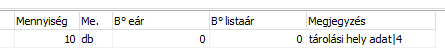 A tételek megjegyzése tétel rögzítésekor felülíródik a cikk cikktörzsben rögzített tárolási helyével valamint a tétel státuszával.