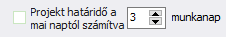 Aktiválása esetén a projekt határideje a megadott napok száma elteltével lesz esedékes, melyet a fel/le nyilak segítségével állíthat be. |