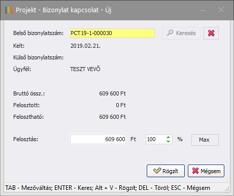 (Bizonylat kszítés): Adott projektből bizonylat készíthető. -
