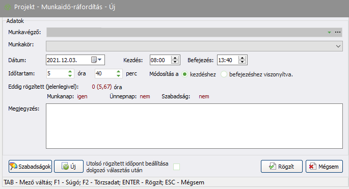 kapcsolót! - Ha a fent megadott adatokkal rögzíteni kívánja a munkaidő ráfordítást, kattintson a