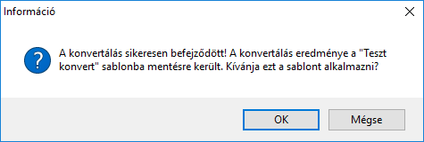 - A sikeres konvertálásról egy ablak tájékoztatja, melyben szerepel a sablon neve, amibe a rendszer mentette a csempéket.