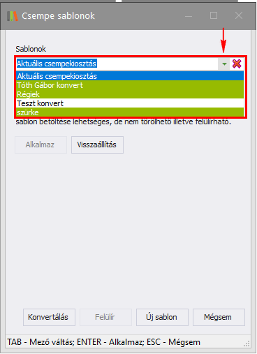 Sablon törléséhez a Csempe sablonok ablakban válassza ki a lenyíló sablonlistából a törölni kívánt sablont, majd a mező melleti