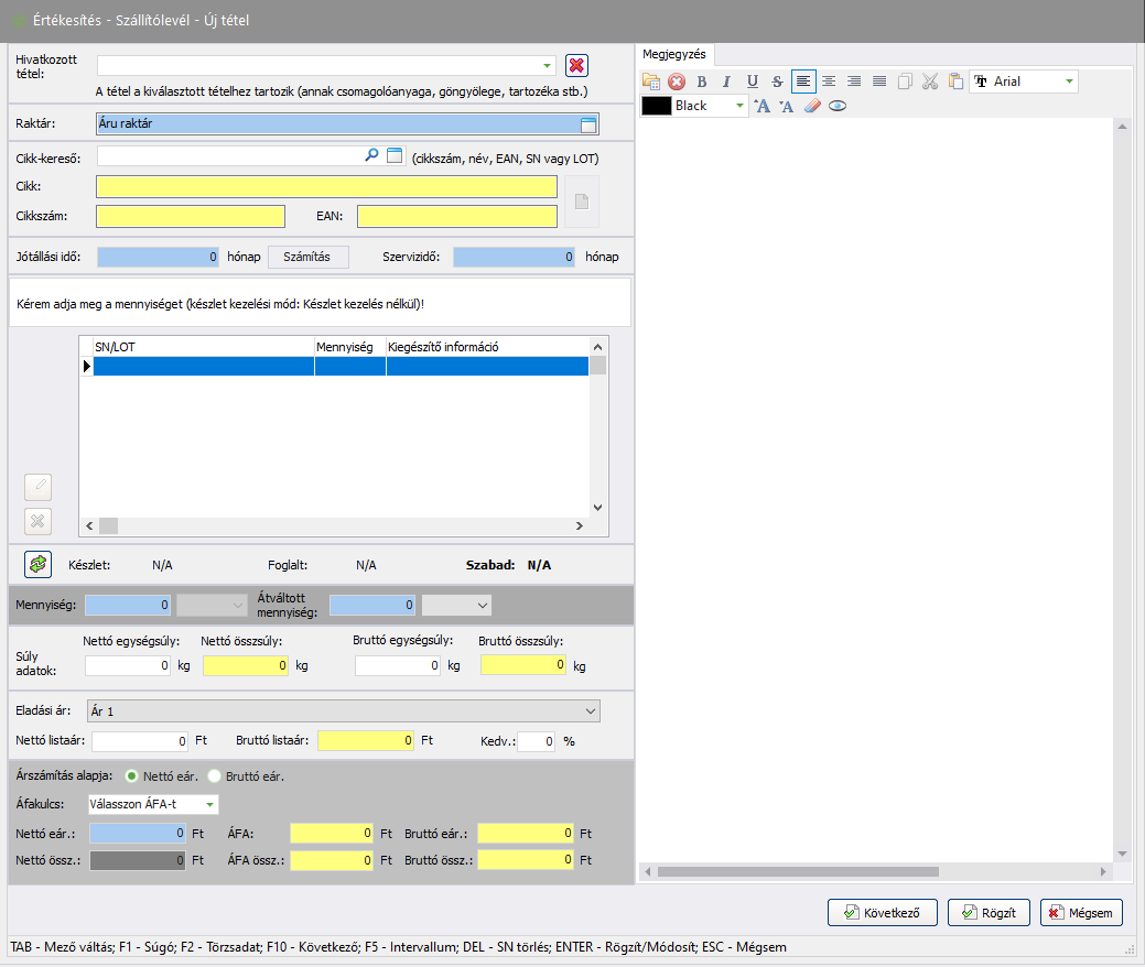 mezőbe a cikkhez tartozó megjegyzést. - Ha szeretné rögzíteni a tételt, kattintson a