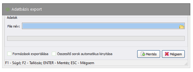 E funkció segítségével lehetséges a szűrt lista adatainak fájlba mentése (exportálása).