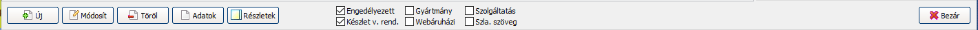 - Új: új törzsadat rögzítése, ugyanez a funkció érhető el az alsó műveletek sáv gombsorán is.