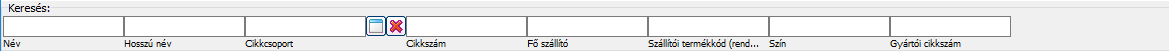 A felső gyorskeresők alatt megjelenik annak a mezőnek a neve (pl. Név, Cikkszám, Vevő), amelyikre a gyorsszűrés vonatkozik. Kétféleképpen szűrhet:
