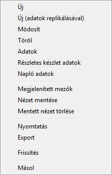 A listával kapcsolatos további műveletek a jobb gombra megjelenő menüből választhatók ki: