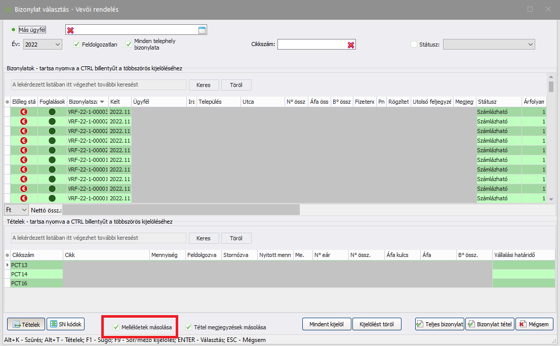 A funkcióról bővebben a Bizonylatok karbantartása c. részben olvashat.