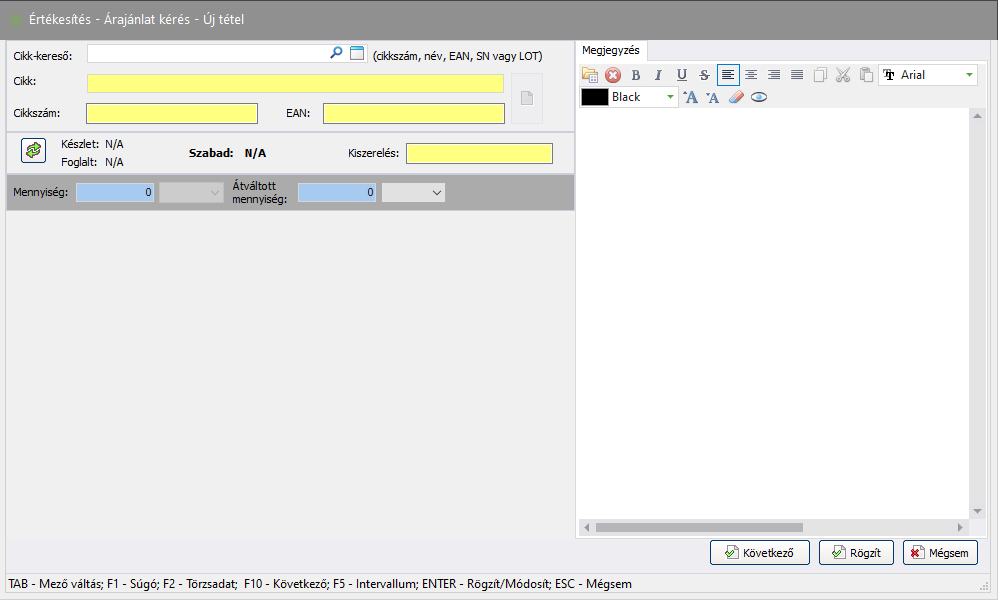 Ebben az ablakban van lehetősége az Árajánlat kérések típusú bizonylatok karbantartására.