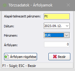 - a rendszer paraméterei között a funkció engedélyezett legyen (a beállítás helyét a Törzsadatok beállításai – Árfolyam törzs beállítása c. fejezetben találja),