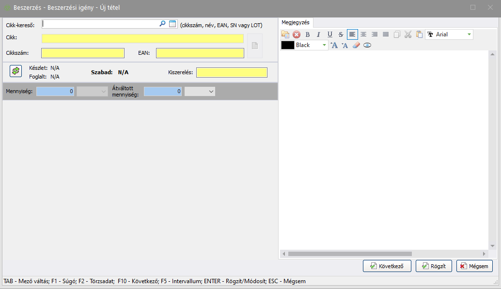 Ebben az ablakban van lehetősége a Beszerzési igény típusú bizonylatok karbantartására.