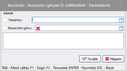 Amennyiben nem választ ki telephelyet, úgy a listában a szállítónkénti csoportosításban a telephelyekre vonatkozó beszerzési igények külön sorként lesznek feltüntetve.