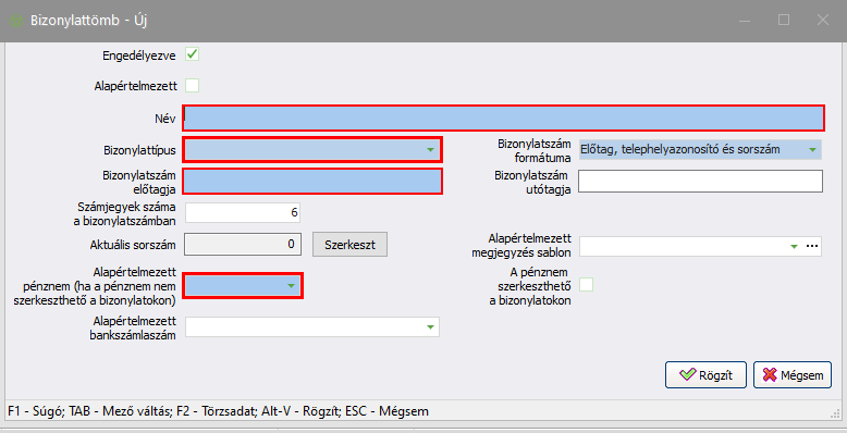 Csak akkor elérhető, ha bepipálja a jelölőnégyzetet. Egy adott bizonylattípusnál, ha több bizonylattömb is engedélyezve van, akkor az adott bizonylattípus megnyitásakor választhat a felhasználó az elérhető tömbök között. |