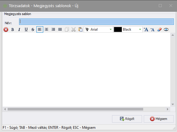 szövegmezőbe adja meg a sablon tartalmát, melyet a formázó ikonok segítségével formázhat. Majd rögzítse a megjegyzés sablont.