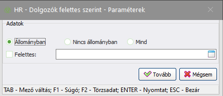 Mind: A rádiógombok segítségével választhatja ki, mely státuszú dolgozók kerüljenek listázásra.