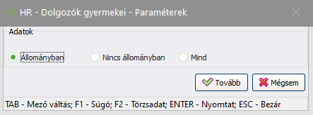 Mind: A rádiógombok segítségével választhatja ki, mely státuszú dolgozók kerüljenek listázásra.