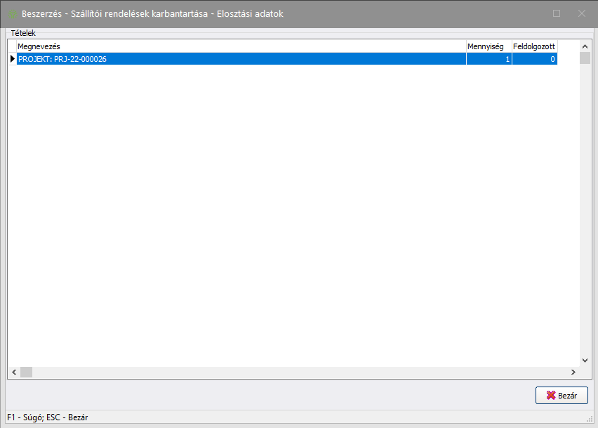 - Szállítói rendelés/Központi szállítói rendelés