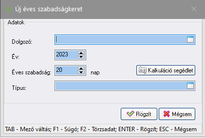 mezőben a dolgozót, akinek az éves szabadságkeretét rögzíteni szeretné. A
