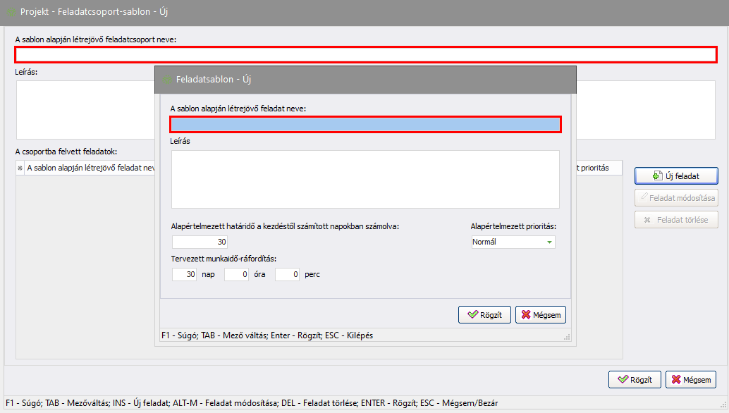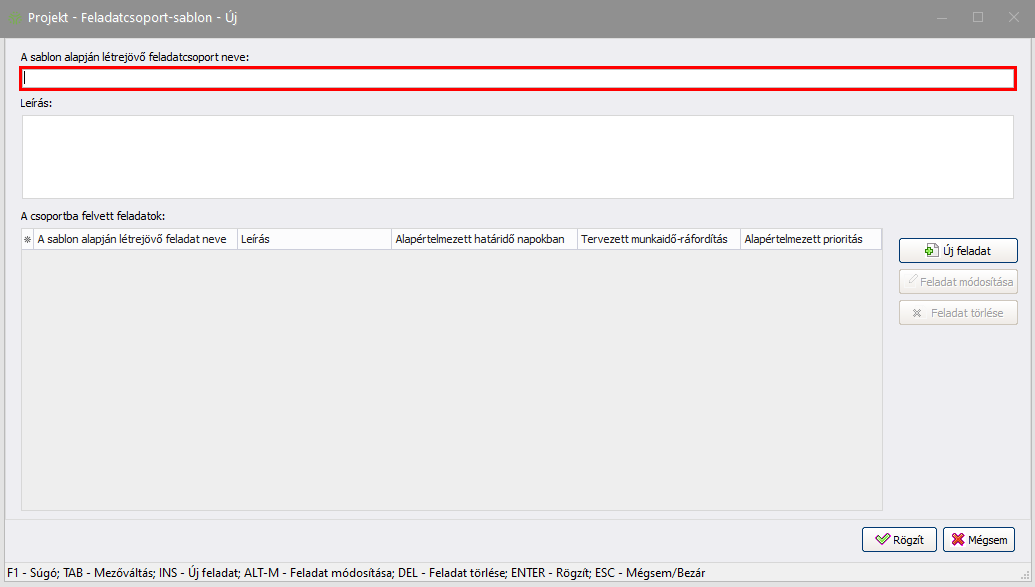 Elérése: Projekt -> Feladatcsoport-sablonok