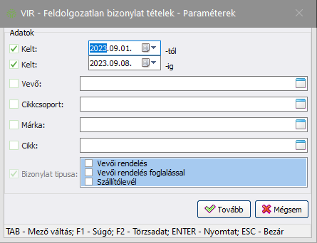 mezőben megadhatja a listázni kívánt bizonylat típusokat.