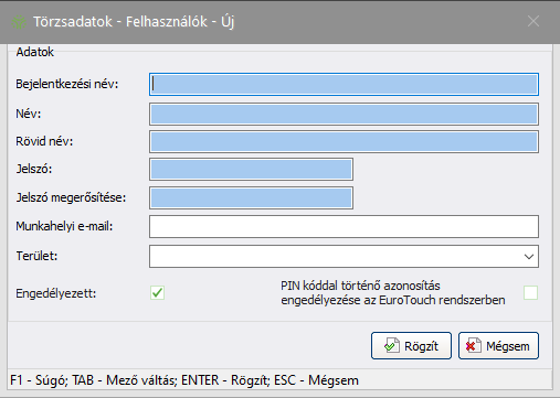 - Bejelentkezési név: A rendszerbe történő bejelentkezéskor a felhasználót azonosító adat. Egyedi adat, azaz egy bejelentkezési név csak egyszer szerepelhet.