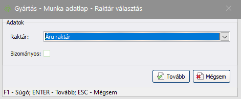 Csak „Ellenőrzött” és „Gyártás folyamatban” státuszú bizonylatok adhatók át gyártásra. Ez a beállítás nem módosítható! |