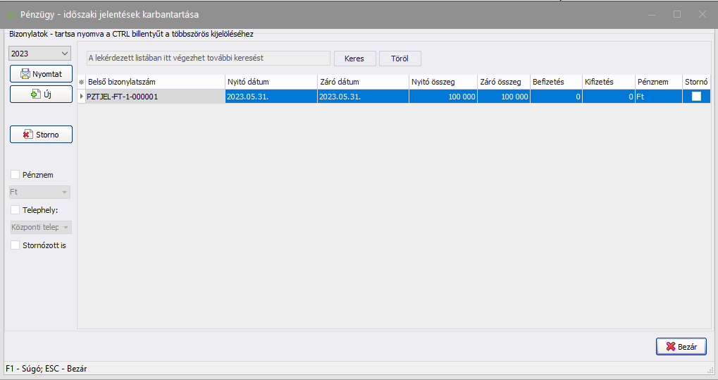 Fontos! Sztornózni csak olyan időszaki pénztárjelentést lehet, melyre vonatkozó pénztár nyitva van.