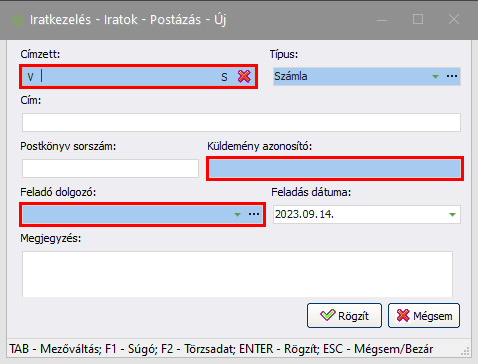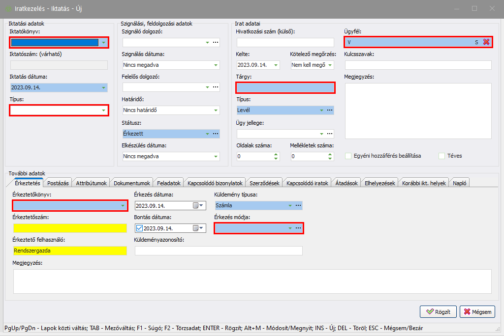 mezőbe küldeményazonosítót adhat meg. Válassza ki a küldemény típusát és az érkezés módját a legördülő listából vagy a szótárból a