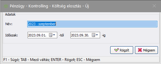 Majd az időszak tól-ig dátum mezőkben adja meg az új költség elosztás időszakát.