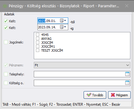 Paraméterezett jelentés készítése egy adott időszak költségeloszlásáról. Miután létrehozta a költség elosztásokat, fontos hogy az adatokat átlátható formában vissza tudja nyerni. A paraméterek megadása után egy nyomtatható vagy e-mailben továbbítható kimutatást generál a program.