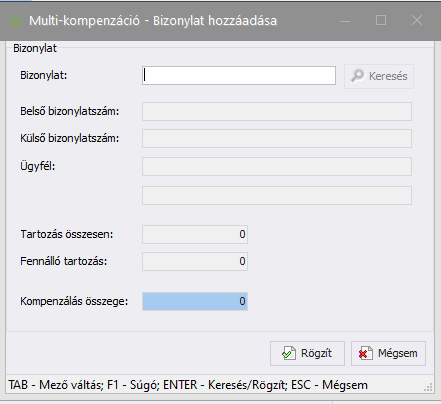 (Új): új bizonylat hozzáadása a kompenzációhoz.