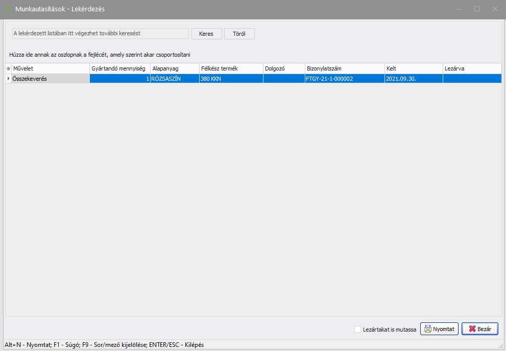 Elérése: Gyártás -> Munkautasítások lekérdezése