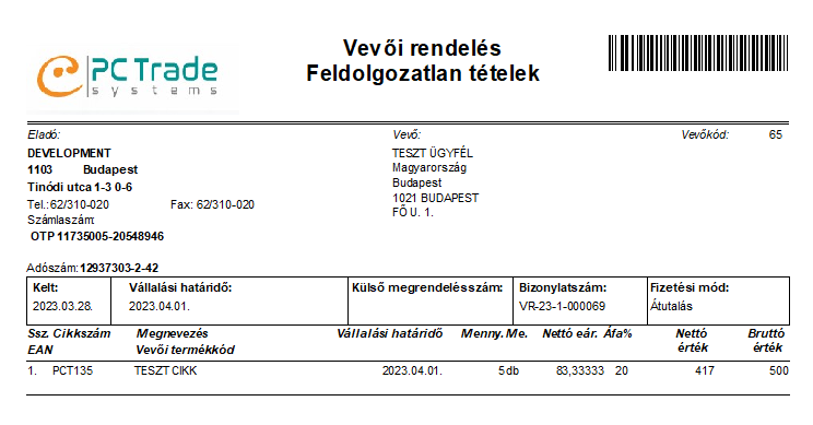 Integráció a vevői rendelés és proforma bizonylatokkal: amennyiben a kapcsoló aktív, úgy a vevői rendelések karbantartása ablakban egy kiválasztott bizonylat tételeihez indítható projekt.