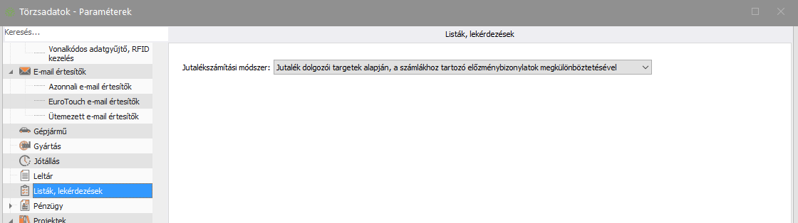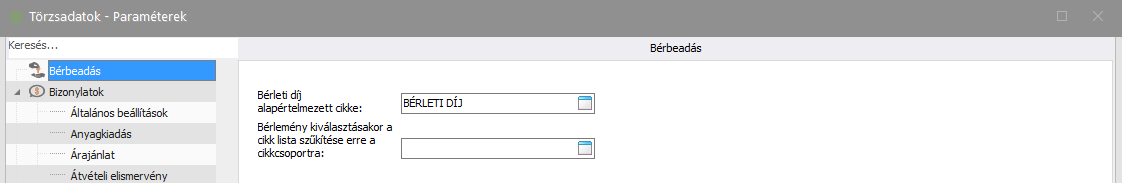 A Törzsadatok – Paraméterek menüben a rendszer egyes központi beállításai érhetők el, amelyek minden felhasználóra érvényesek.