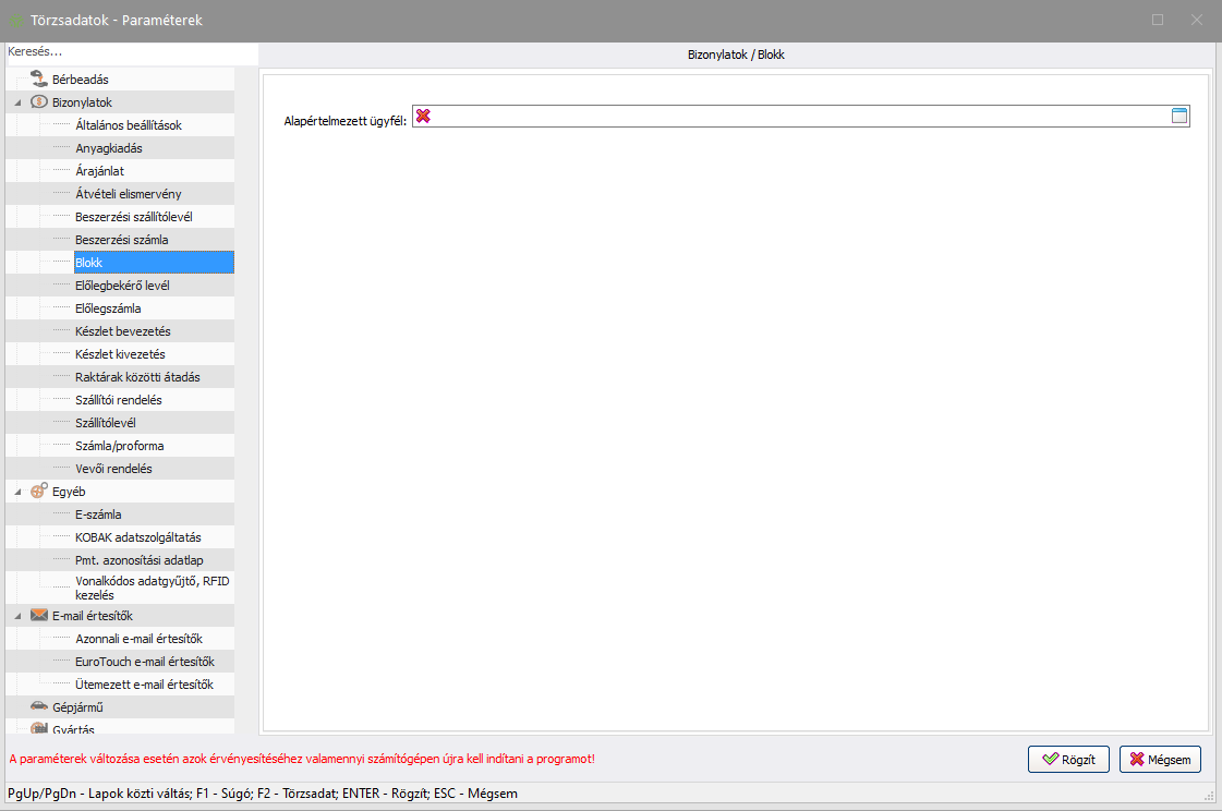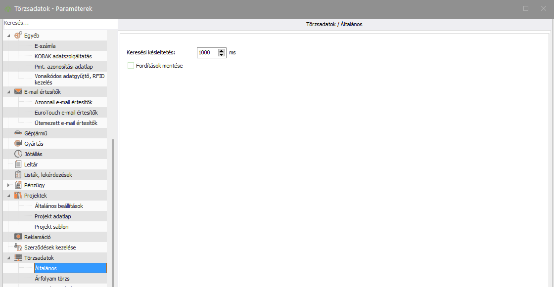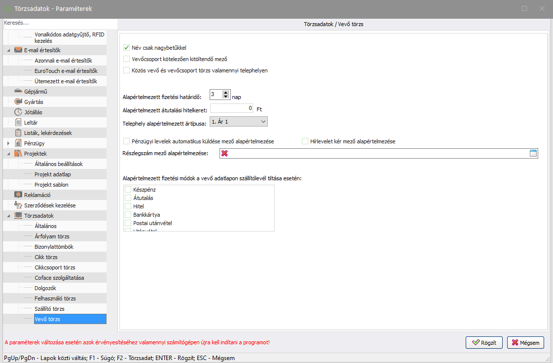 Elérése: Törzsadatok -> Paraméterek -> Törzsadatok (fül) -> Általános (fül) vagy